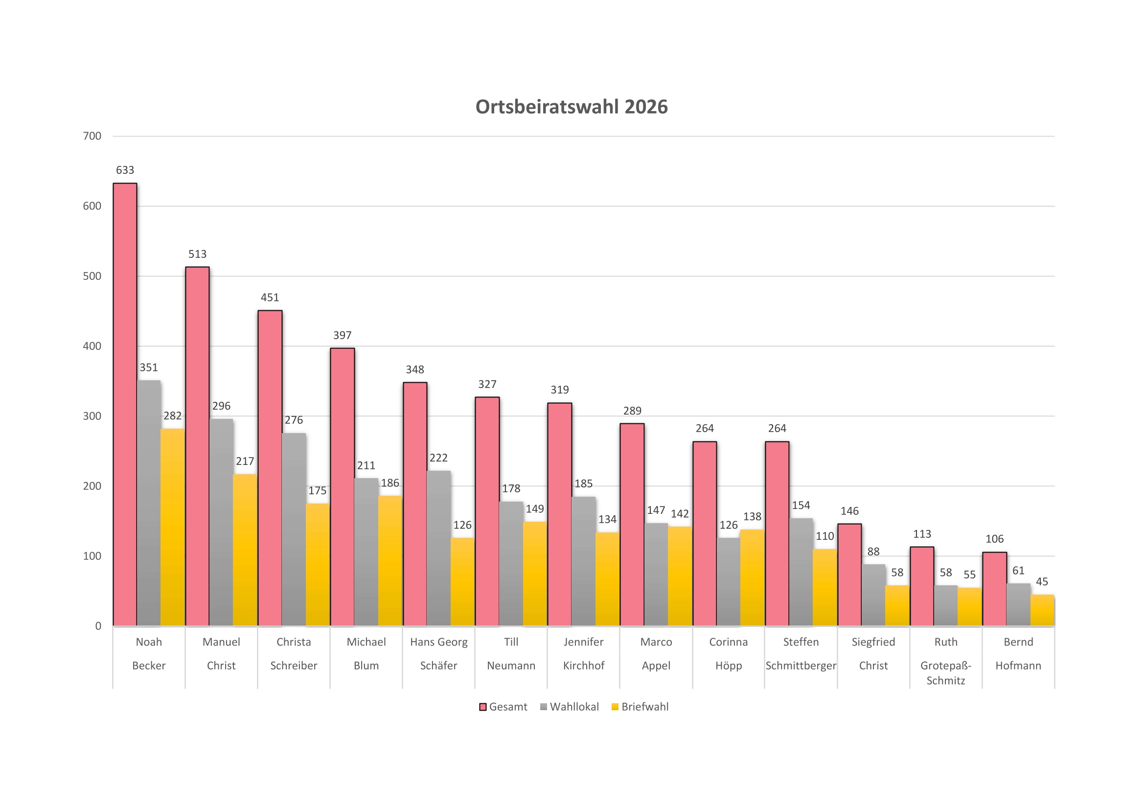 Die erste, konstituierente Sitzung des neuen Ortsbeirates findet vorraussichtlich am 07.04.2026, im Bürgerhaus statt.